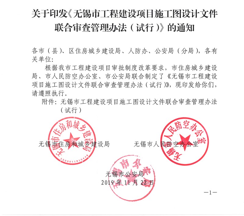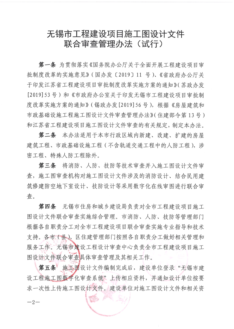 关于印发《无锡市工程建设项目施工图设计文件联合审查管理办法(试行)的通知