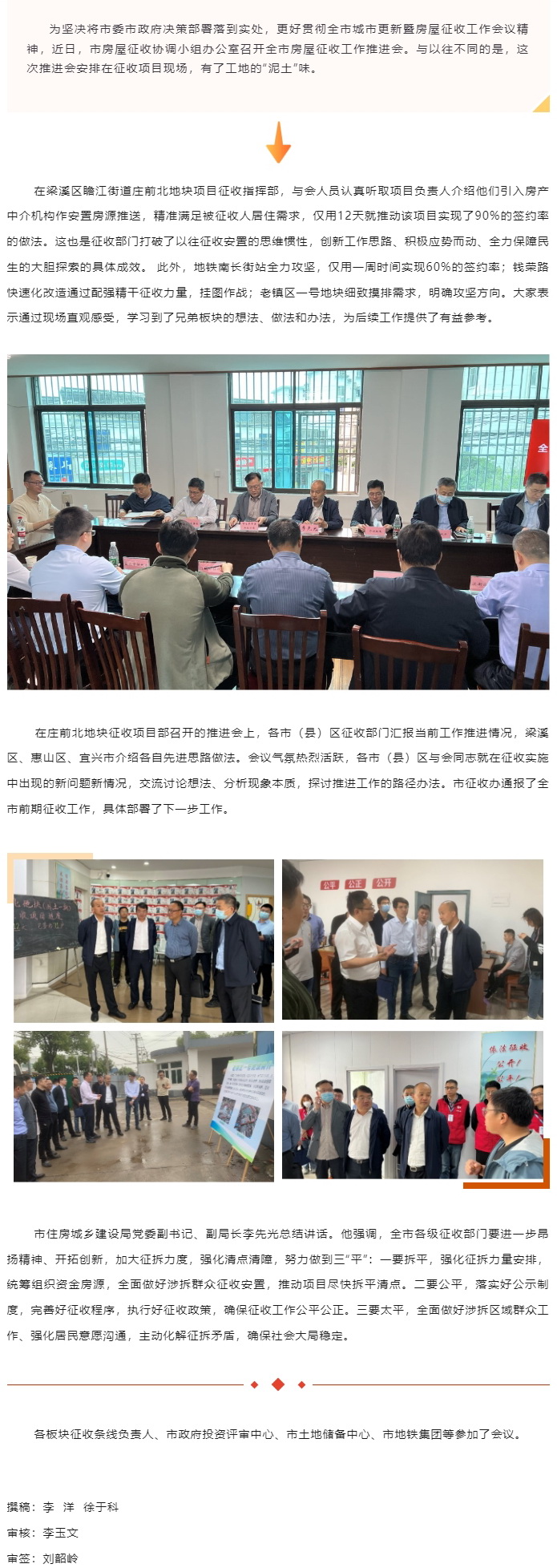 脚上沾泥土 会在一线开︱市房屋征收协调小组办公室将房屋征收工作推进会开到工地现场