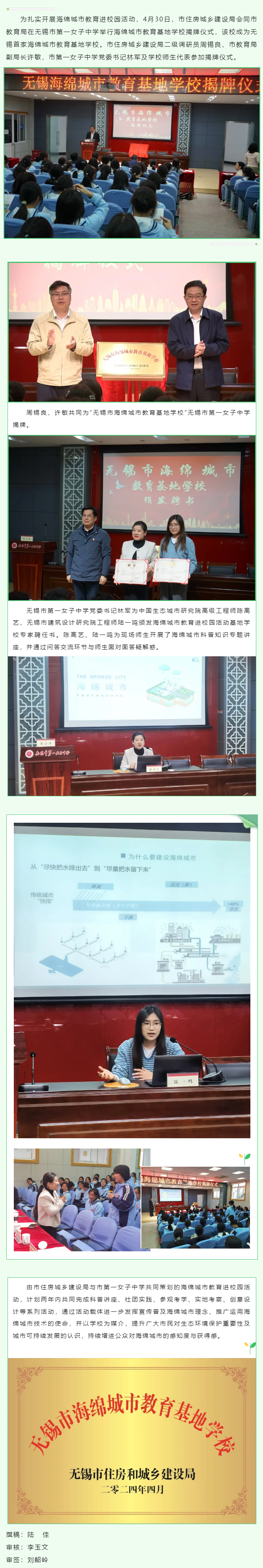 我市首个海绵城市教育基地学校揭牌