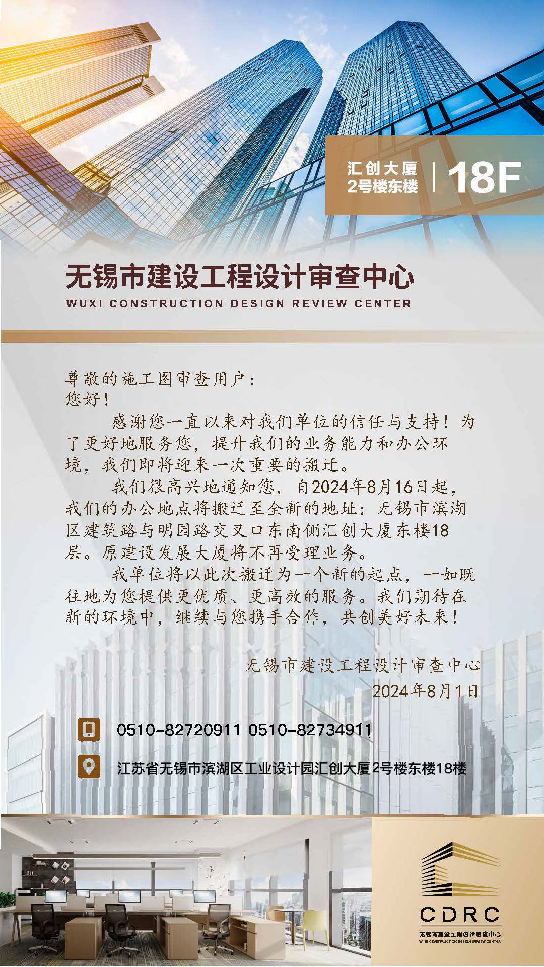 无锡市建设工程设计审查中心搬迁通知