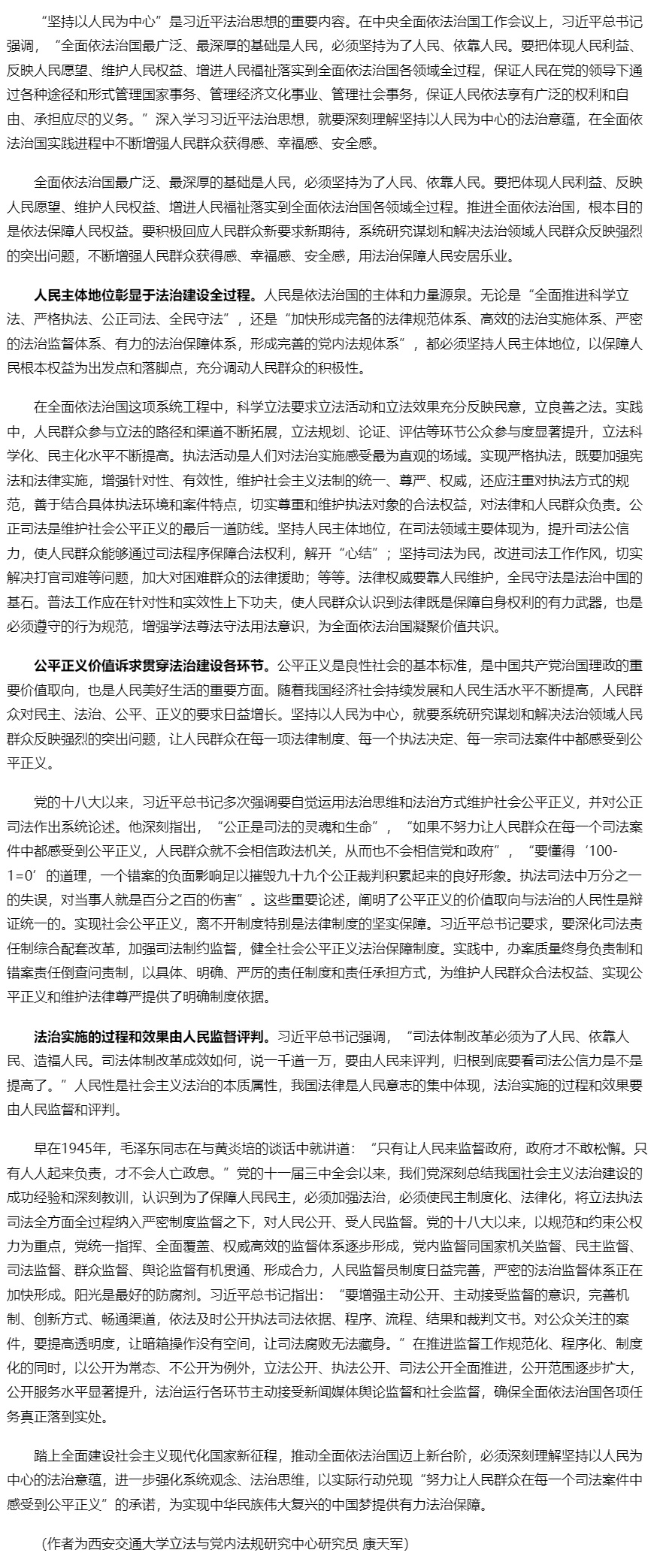 坚持以人民为中心的法治意蕴