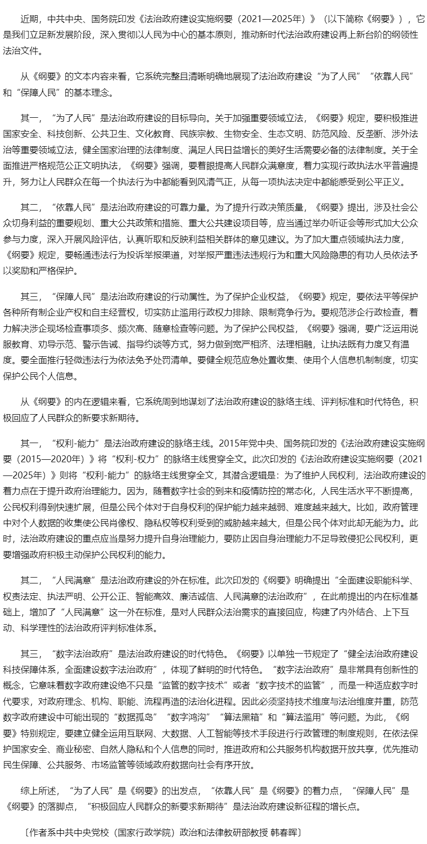 以人民为中心推进法治政府建设
