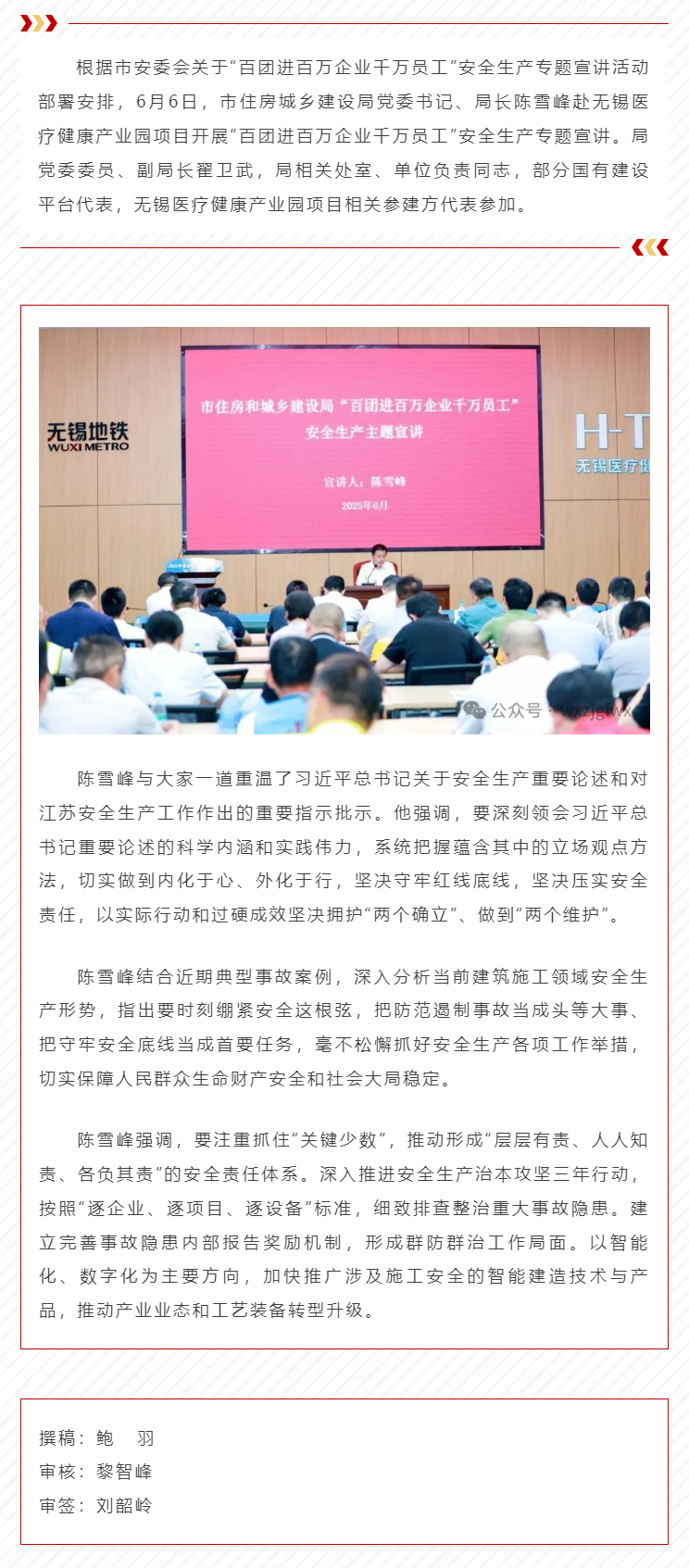 陈雪峰到施工项目一线开展安全生产专题宣讲