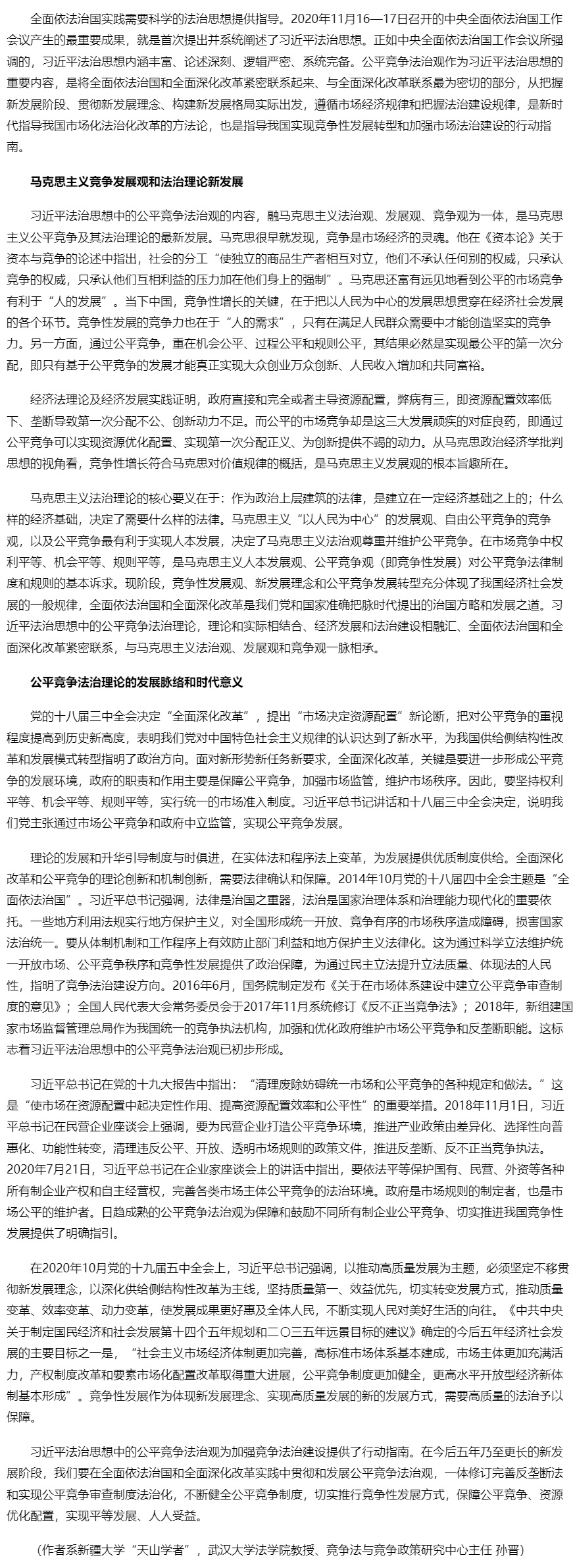 习近平法治思想中的公平竞争法治观
