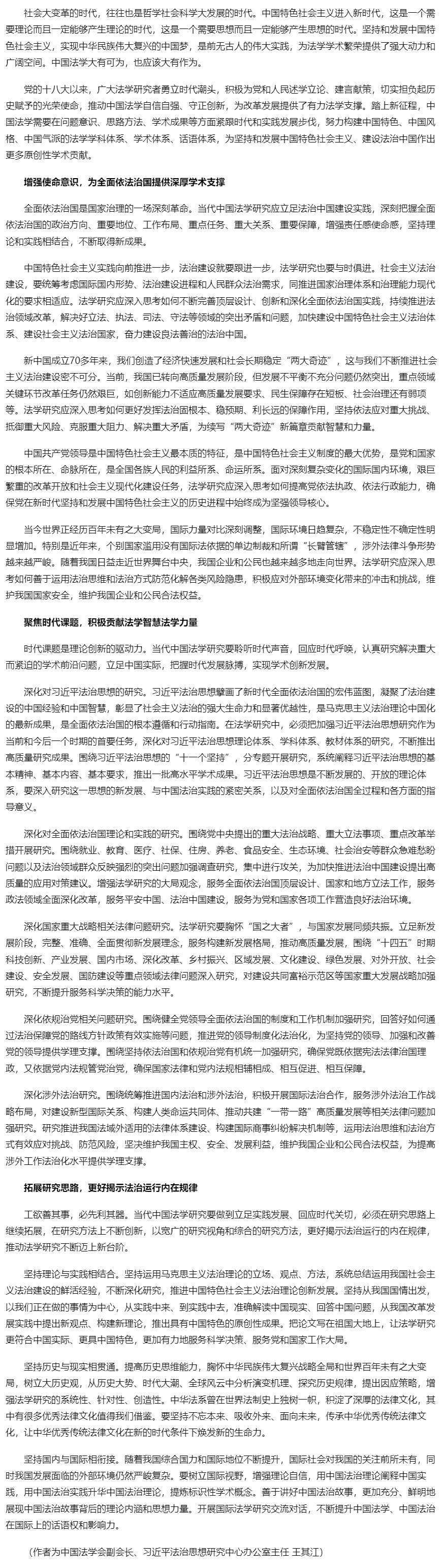 新时代法学研究的使命与担当