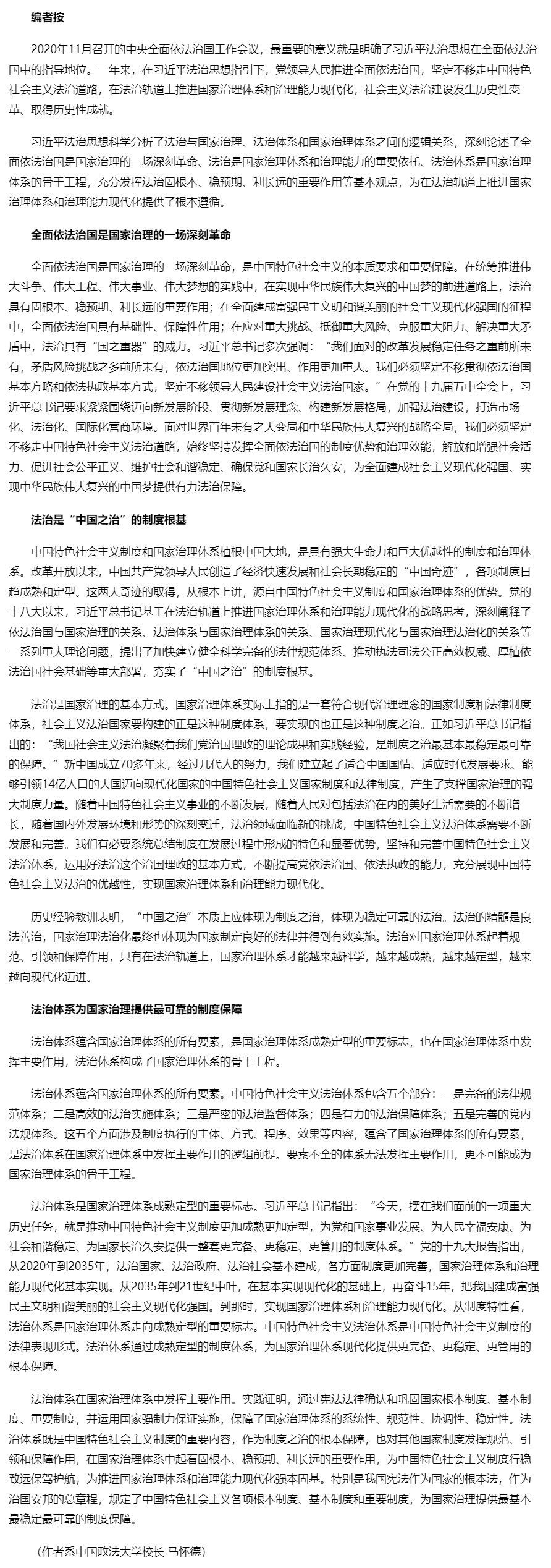 法治是国家治理体系和治理能力的重要依托