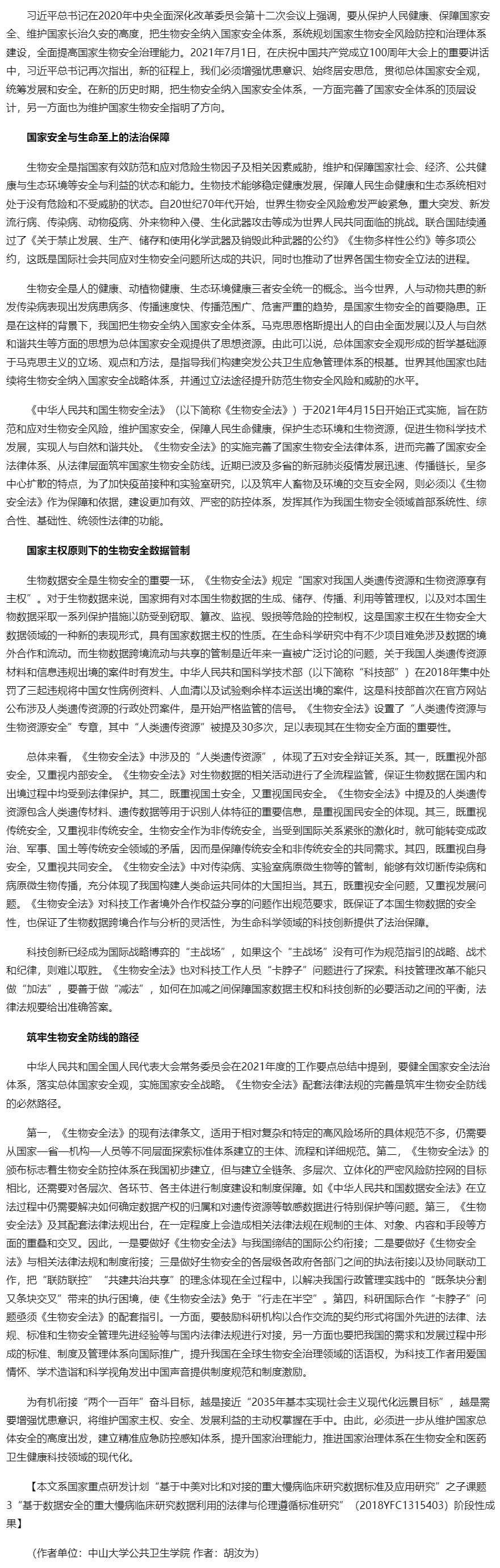 坚持总体国家安全观 筑牢生物安全防线