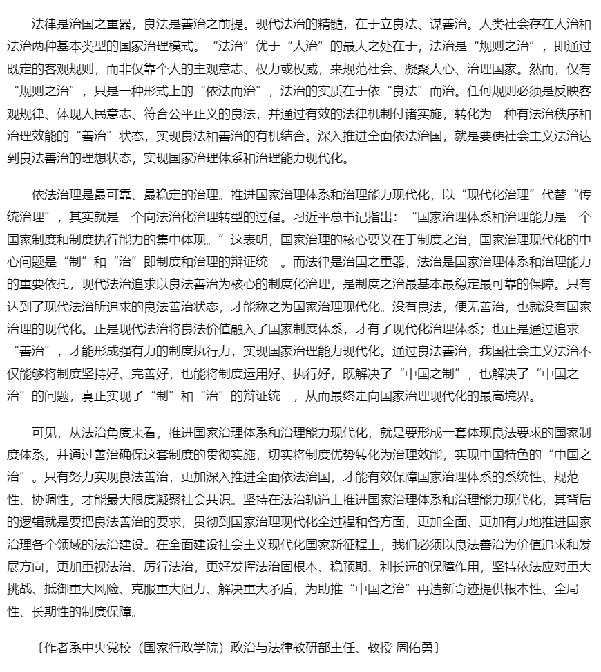 以良法善治推进国家治理现代化